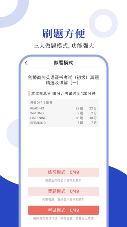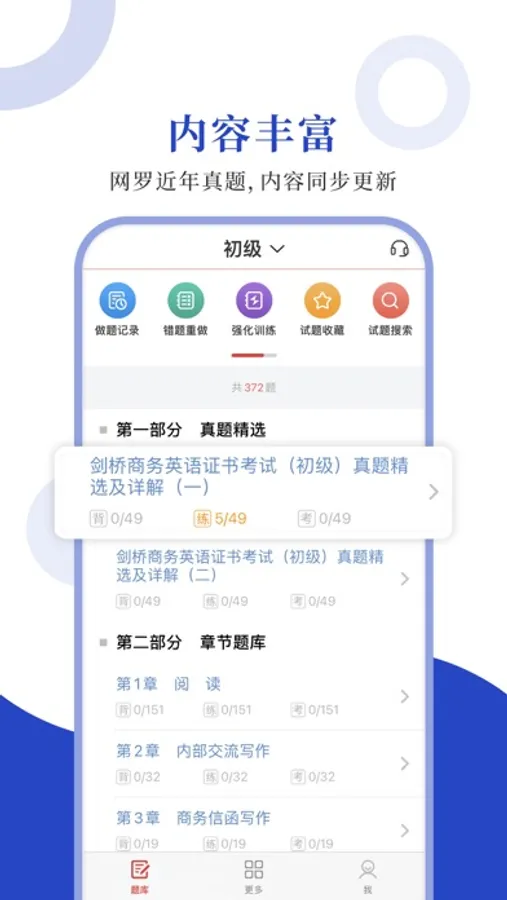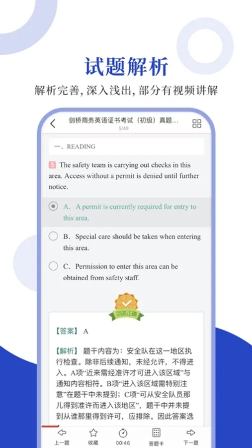 专为剑桥商务英语证书考试(BEC)精心准备的考试配套题库,每一道试题都有答案解析,为考试提供了充分的复习准备,可随时随地学习练习,支持手机、平板多端同时使用。