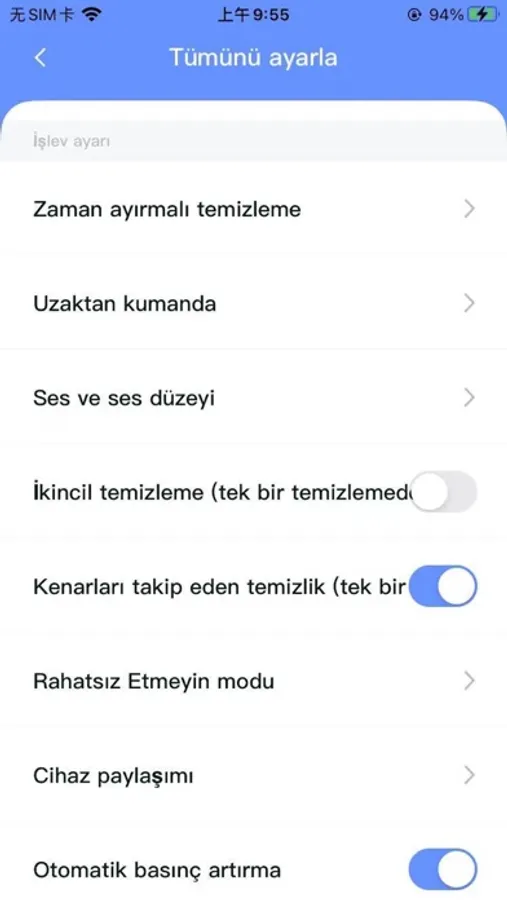 Oda Seçimi, Alan Bölme,Sanal Duvar,Sabit Nokta Temizliği,Uzaktan Kontrol,Saat Belirleyerek Silme Ve Süpürme İşlemlerinizi Yapabilirsiniz.