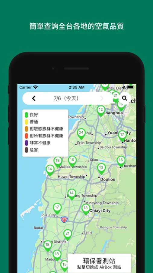 - 本App之空品資訊來自行政院環保署與民間空氣盒子計畫所提供之全台空氣品質的即時資料