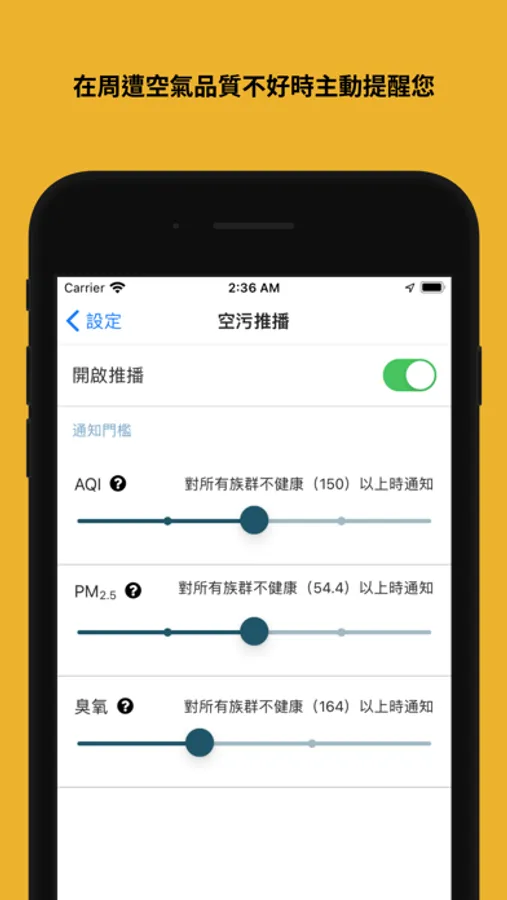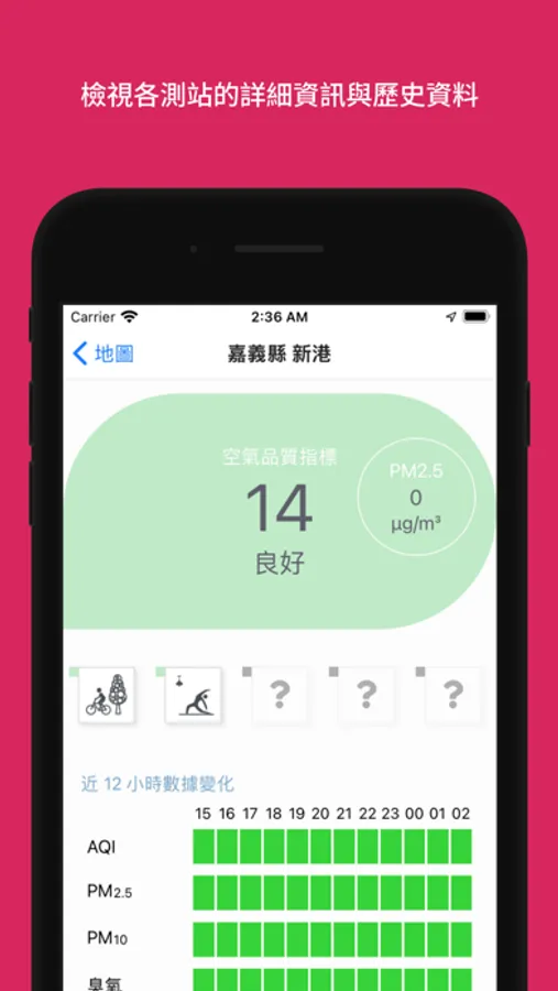 - 可設定每日快報,讓您每天都知道一天生活的空氣品質