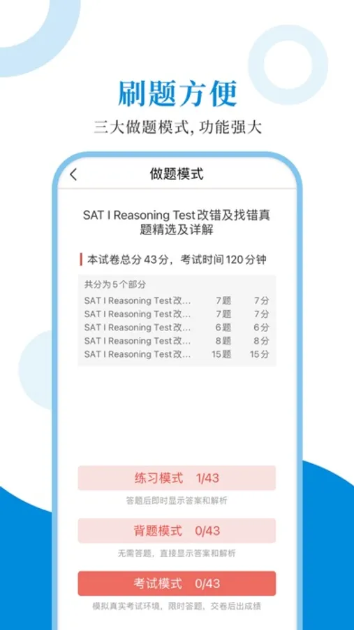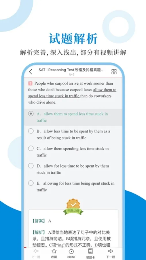 专为美国学术能力评估考试(SAT)精心准备的考试配套题库,每一道试题都有答案解析,为考试提供了充分的复习准备,可随时随地学习练习,支持手机、平板多端同时使用。