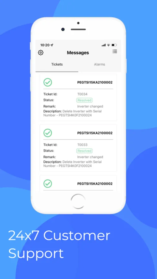 Get customer support by reporting issue in the application. Track all your requests and complaints in ‘Tickets Tab’.