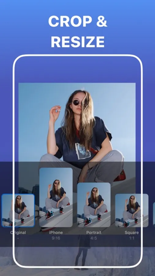 Post photos in full size without cropping! Make photos suitable for Instagram or other social media, add frames of any color, resize, rotate, erase background, remove objects and more.