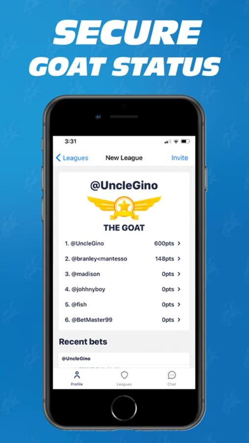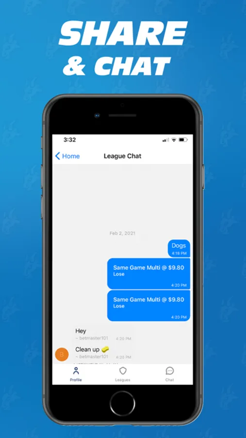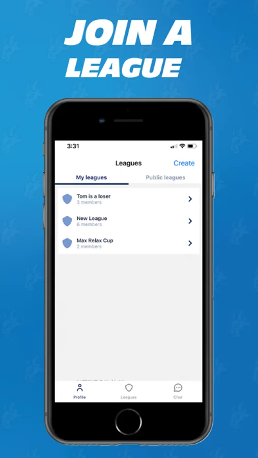 • Leagues – create multiple private betting leagues or join a public one.