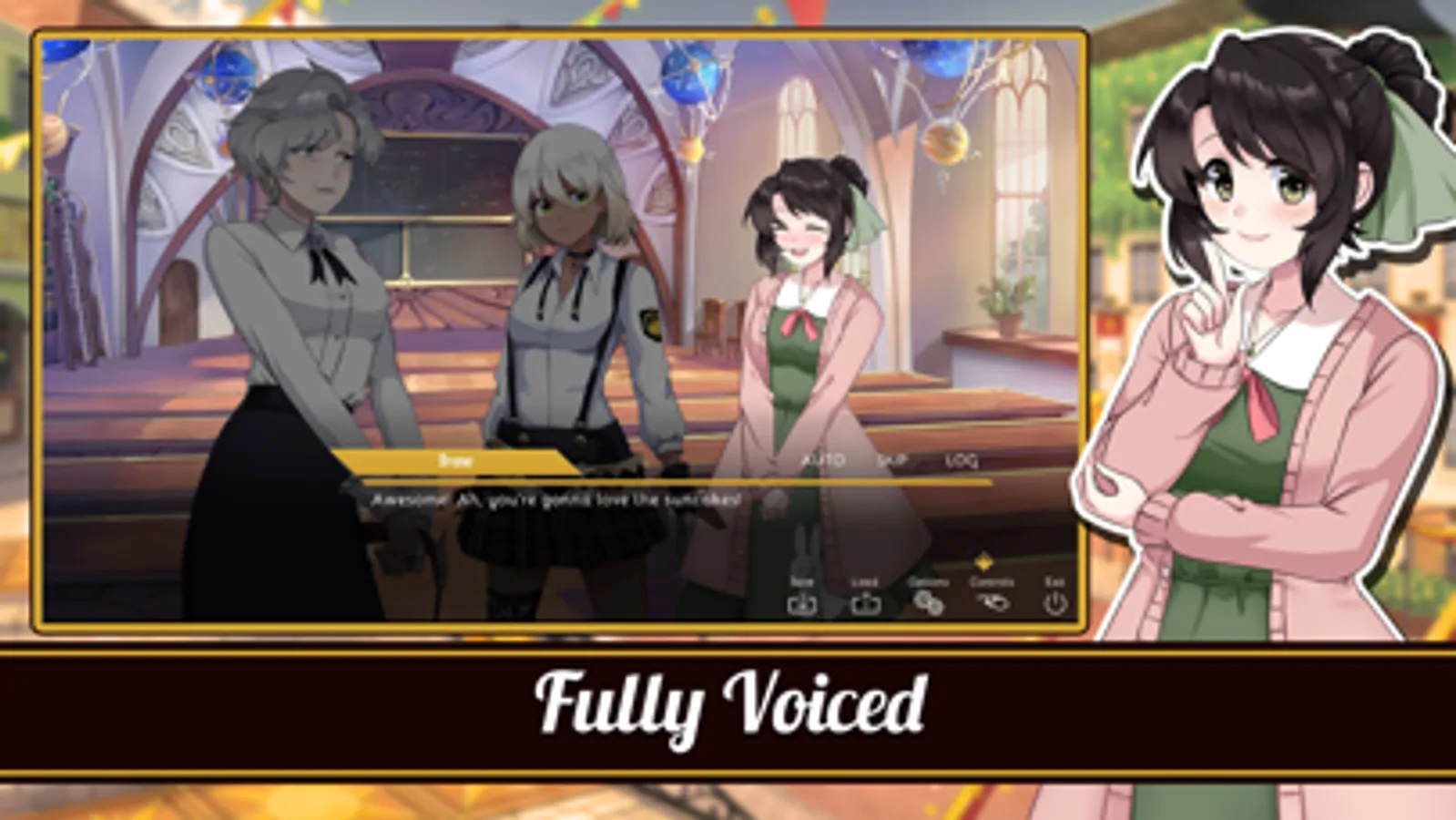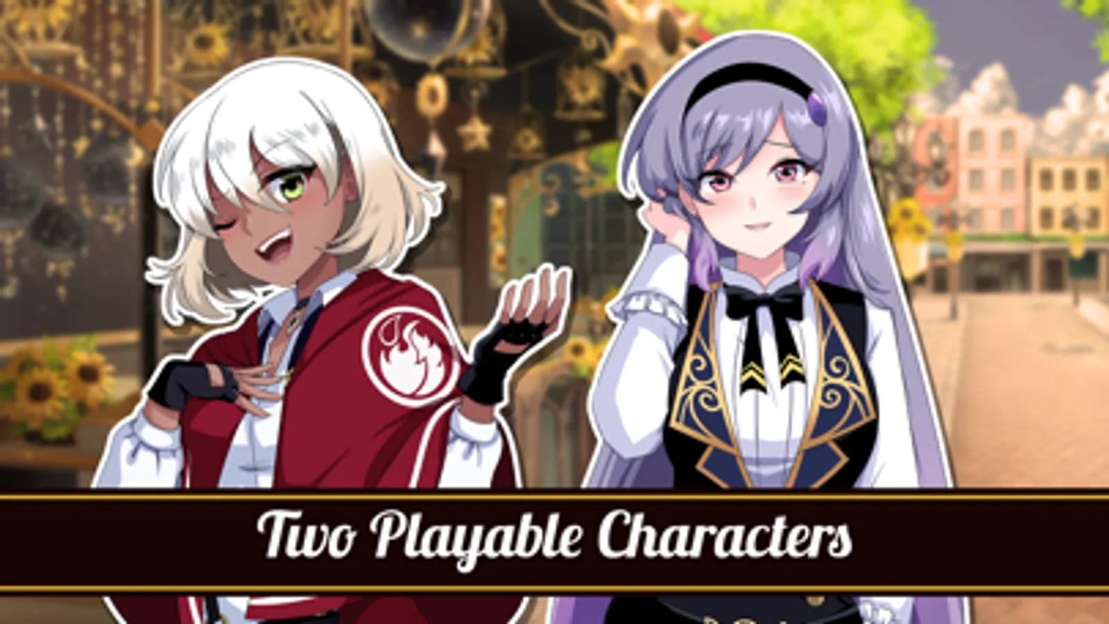 Perfect Gold: The Alchemy of Happiness is a short, coming-of-age yuri visual novel about two former friends who escape detention in order to celebrate the Sunflower Festival. Set in the magical city of Castlecoast, readers get to know Audrey Clary, an alchemy student and heiress who secretly dreams of a different life, and Marion LaRue, a rebellious elemental magic student in search of someone she once loved.