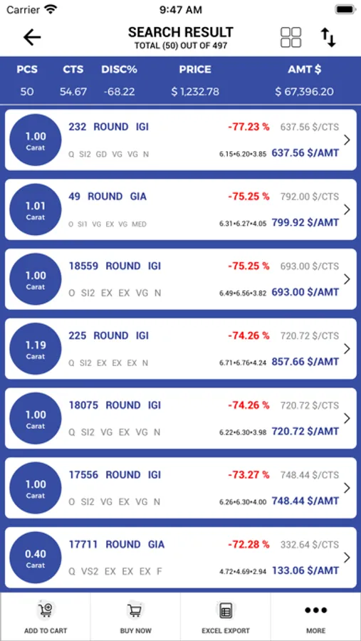 Quick and easy search of Collection of over 2000 diamonds.