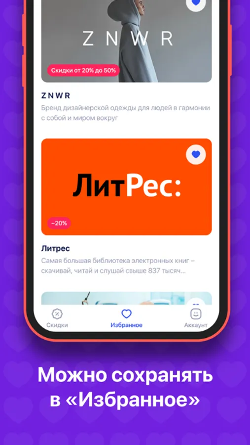 Если у вас появятся любимчики среди наших партнеров, вы легко сможете добавить их в «избранное», чтобы иметь мгновенный доступ к скидками и промокодам. Не нужно заставлять официанта ждать, чтобы найти свою скидку.