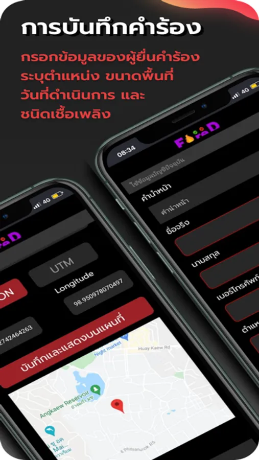 โดยระบบประกอบไป 2 ส่วนที่สำคัญ ก็คือ 1. ระบบลงทะเบียนคำร้องขอใช้ไฟเพื่อจัดการเชื้อเพลิงชีวมวล ซึ่งผู้มีความจำเป็นต้องใช้ไฟสามารถยื่นคำร้องผ่านหน่วยงานที่ได้รับมอบหมายในพื้นที่เท่านั้น และ 2. คือระบบสนับสนุนการตัดสินใจในการพิจารณาคำร้องขอใช้ไฟในการจัดการชีวมวล ซึ่งพิจารณาโดยหน่วยงานหรือเจ้าหน้าที่ที่ได้รับมอบหมายในพื้นที่เท่านั้น FireD เป็นระบบสนับสนุนการทำงานเพื่อแก้ไขปัญหาฝุ่นควัน PM2.5 ให้กับหน่วยงานเท่านั้น ไม่ได้เป็นแอพพลิเคชันการตัดสินใจในการพิจารณาคำร้องได้ด้วยตัวระบบเอง ดังนั้นผู้พัฒนาระบบแอพพลิเคชัน FireD จะไม่รับผิดชอบการกระทำใดๆ ที่ผิดกฏหมายที่เกี่ยวข้องกับการเผาในที่โล่ง