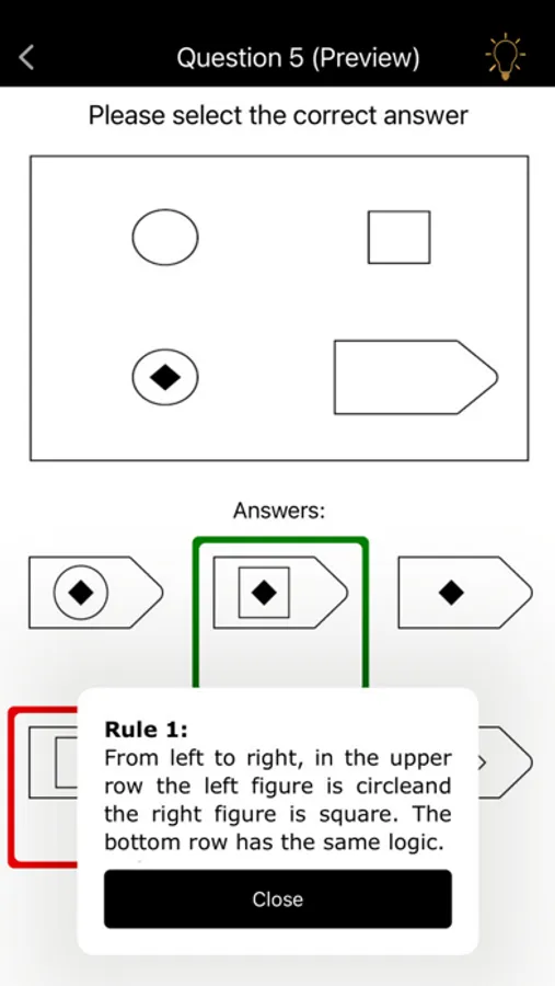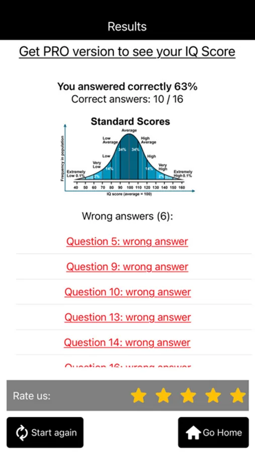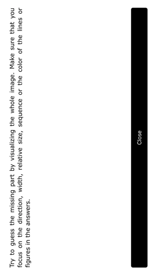 This app consists of total 48 multiple-choice questions. On each test you will get 16 random questions listed in ascending order of difficulty. You will be given six choices from which to select and complete the missing element.