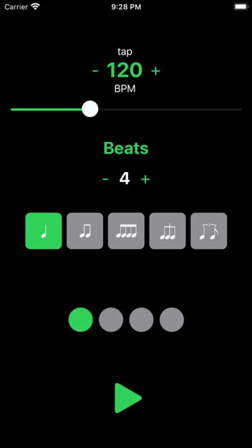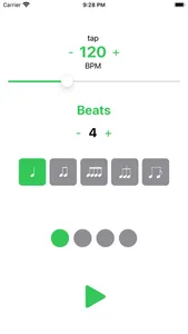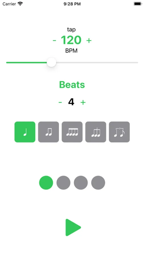 Carter is an easy to configure metronome app that allows you to easily change the metronome's BPM and beats per measure. It's also possible to set BPM through tap tempo. You can also easily add extra notes like sixteenth notes, and triples to make practicing several rhythms a breeze.