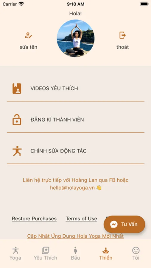 Liên lạc với hoàng lan qua fanpage hoặc hello@holayoga.vn nhé.