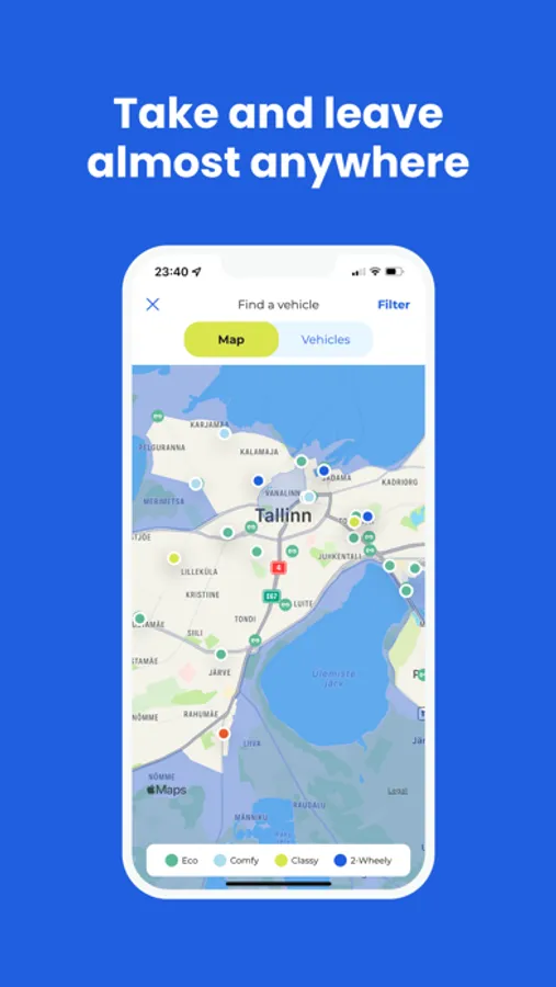 Saw a vacant Elmo car on the street? Open the app, unlock the doors and drive. Simple!