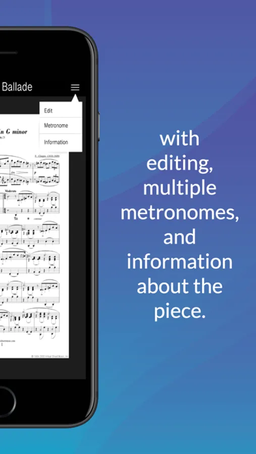 MusicSheet aims to provide a medium through which musicians, professionals and amateurs alike, can store and view their sheet music digitally. The app is easy to navigate and sleek yet simplistic in style in order for users to be able to focus on their music without distractions or drawn-out processes.