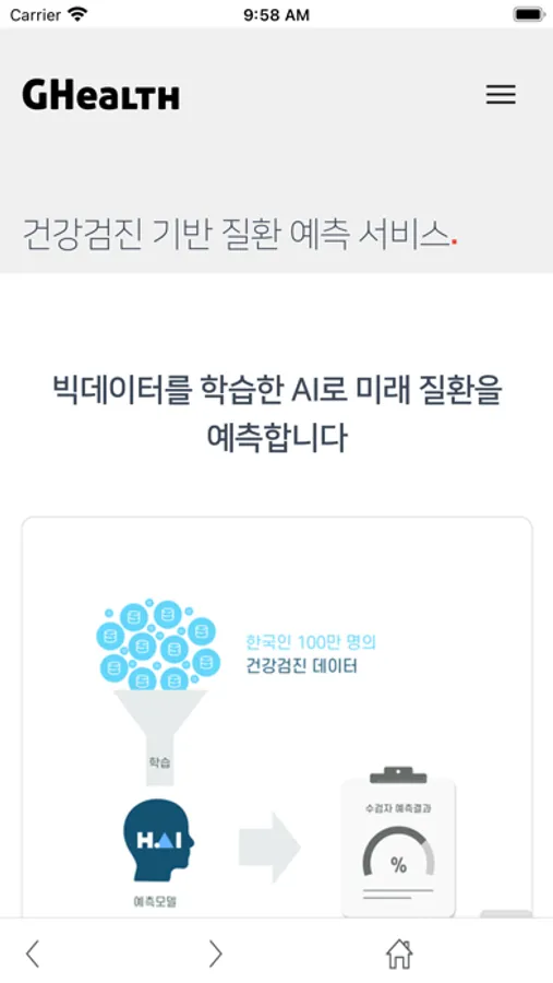 다양한 질환예측 및 개인맞춤 건강 관리를 제공합니다.