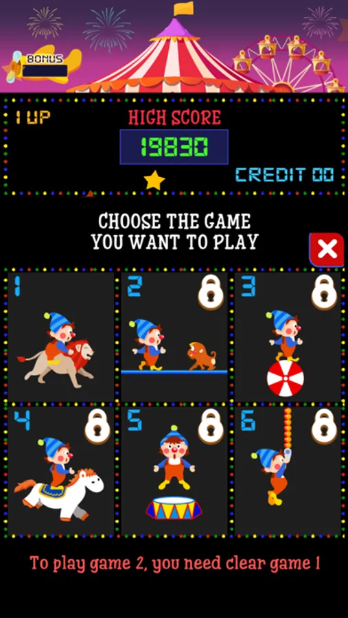 In The Circus : Clown Show you must control player as the Clown, with each of the game's six stages being based on a different circus event.