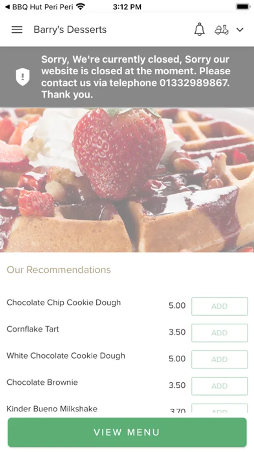 Thank you for visiting Barry's Desserts in Derby. We hope you enjoy our online ordering app and your food.