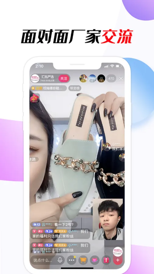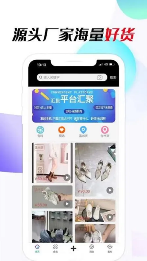 汇批是一款B2B商城,将常规的图文商品介绍改成小视频模式,加入了面对面通话功能,看重哪款商品想知道详细资料,直接一键和厂家面对面视频聊天,还可以随时一键看厂房监控视频信息