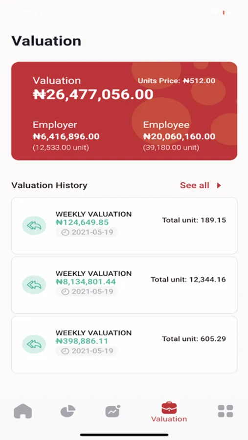 Valuation: Members can view current valuation of their respective investment in the scheme as well as valuation history.