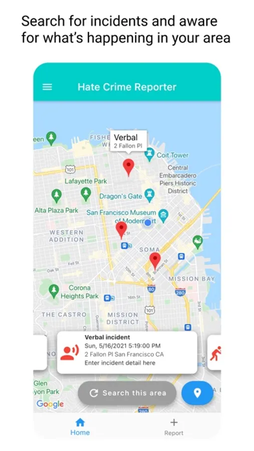 Users who are concerned about hate crimes can use this app to search for incidents that have occurred in their vicinity.
