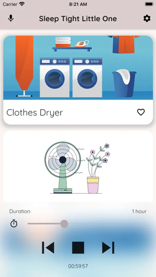 Play sounds in a loop for the predefined time, keep sound playing with lock screen, define sounds as favorite and move to next/previous even while the screen is locked. With our recording feature you can add any sound works best for your baby.
