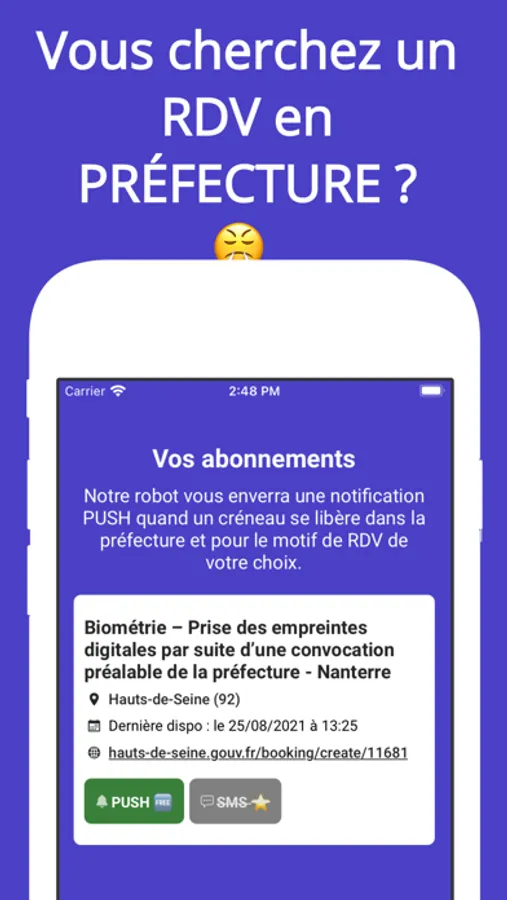 - Notifications SMS EMAIL PUSH rendez-vous préfecture