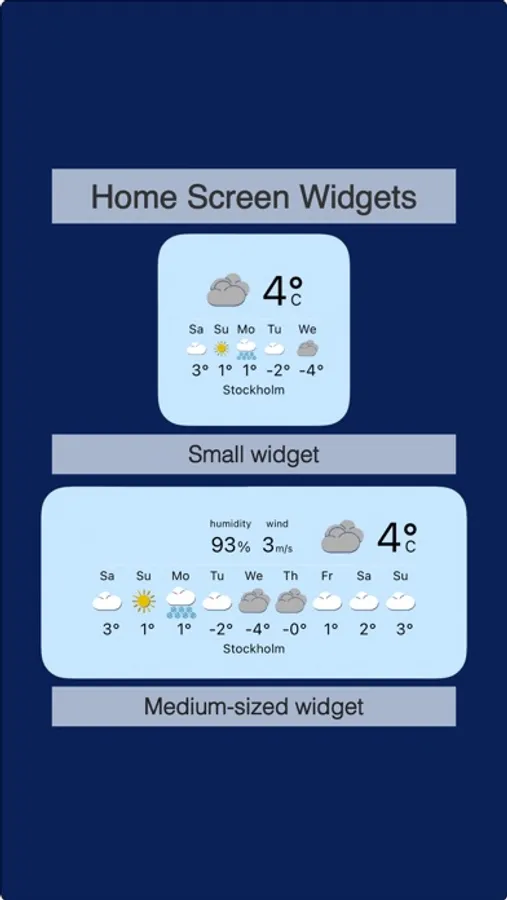 Widget, for use on the Home Screen, are also included with the PLUS subscription. Widget are available in two sizes and provide conveniently glanceable weather information.