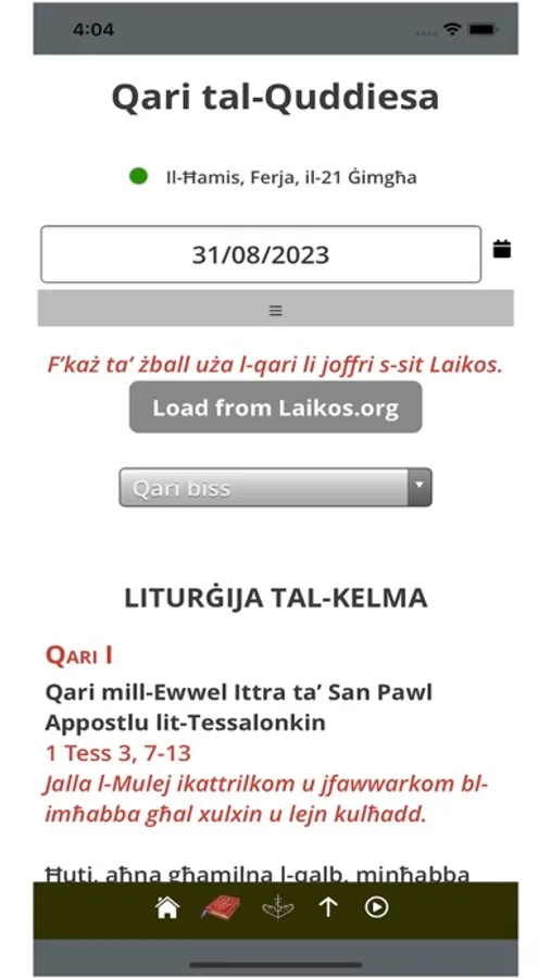 Link għas-sit laikos.org jagħti l-qari tal-Quddiesa tal-jum.