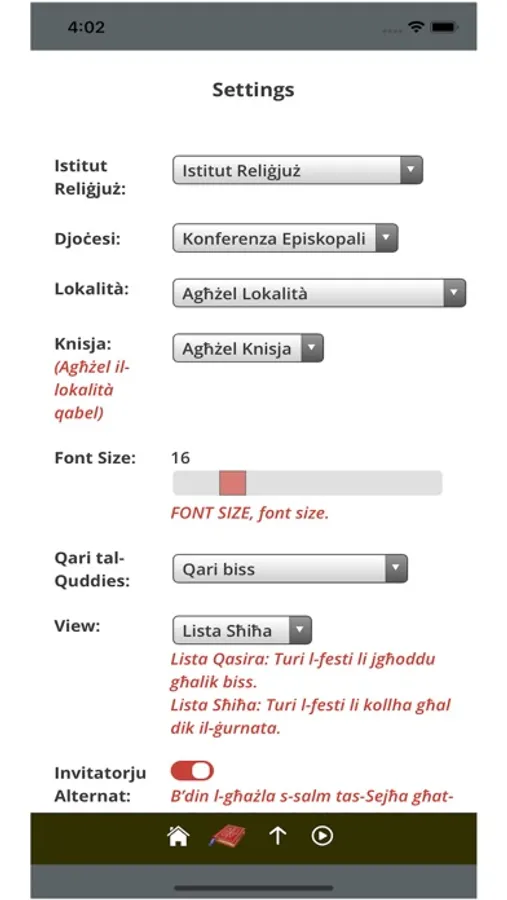 Xi istituti reliġjużi jistgħu jagħżlu menus tagħhom mill-paġna Settings.