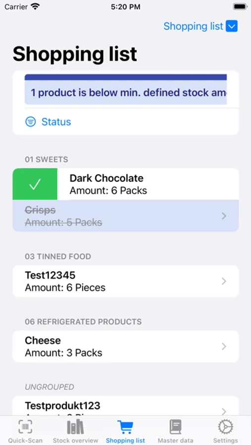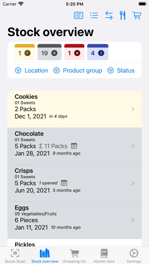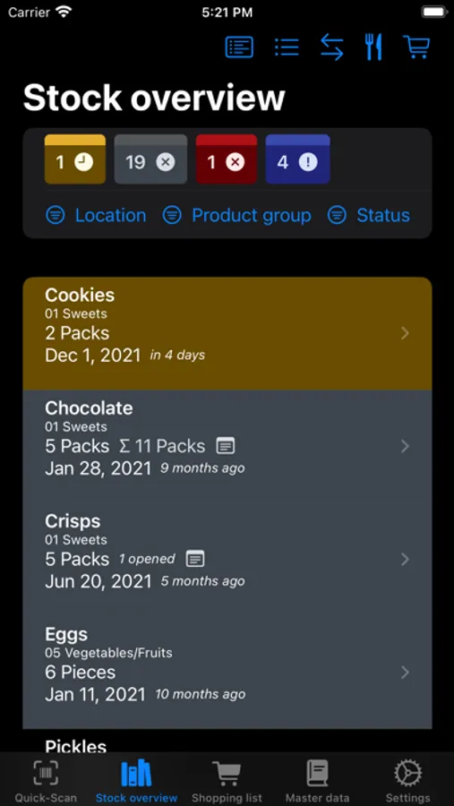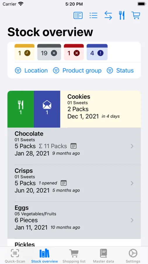 - full stock management, shopping lists and master data management