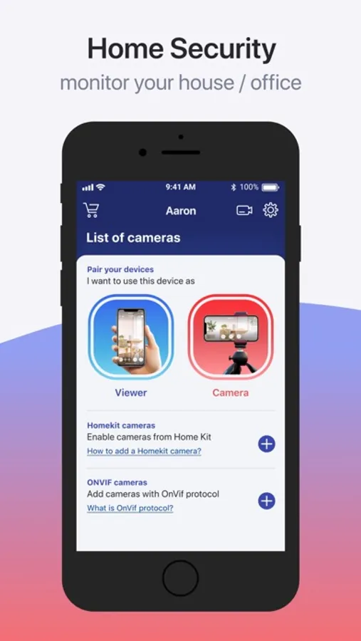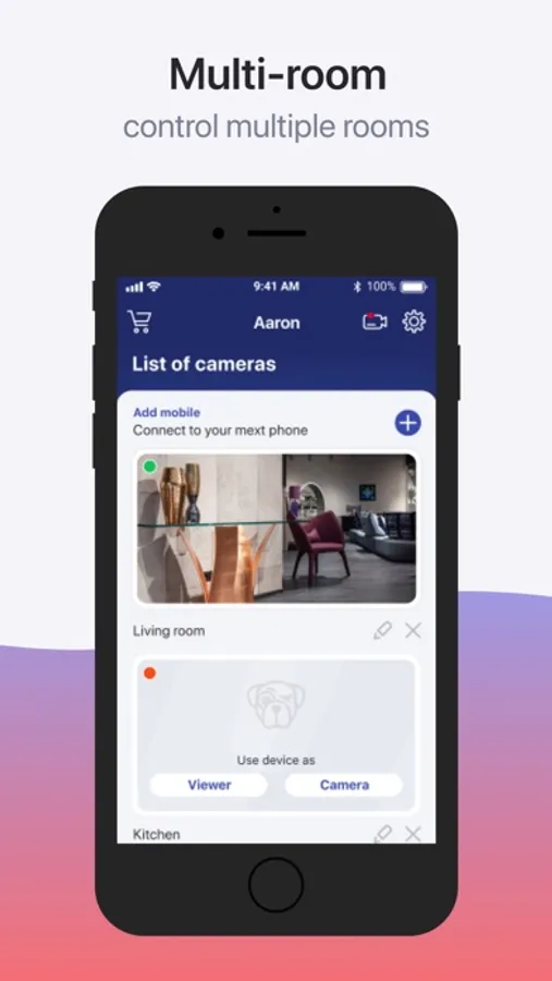 To create a custom surveillance system in your home, all you need is at least 2 devices (phone or tablet) with the Aaron Home Security app. Connect them and transform them into the perfect IP camera.