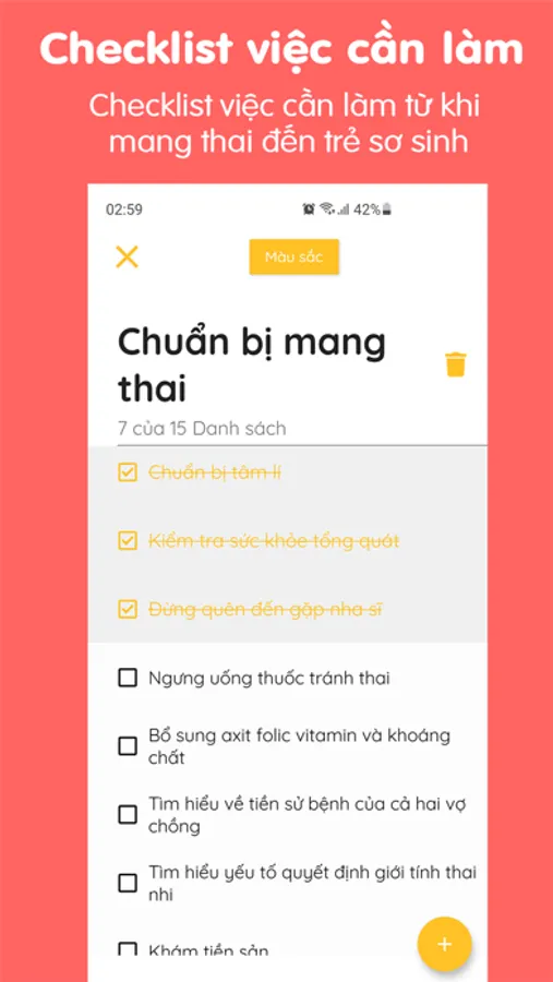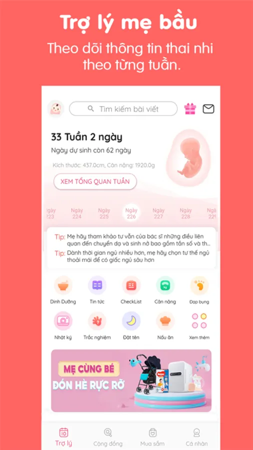 • Theo dõi thông tin thai nhi theo tuần và ngày hình ảnh, kích thước, các chú ý ....