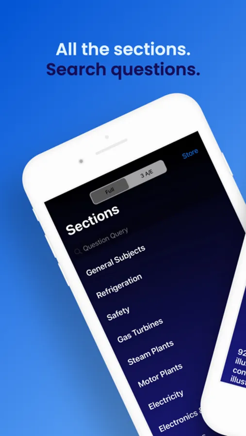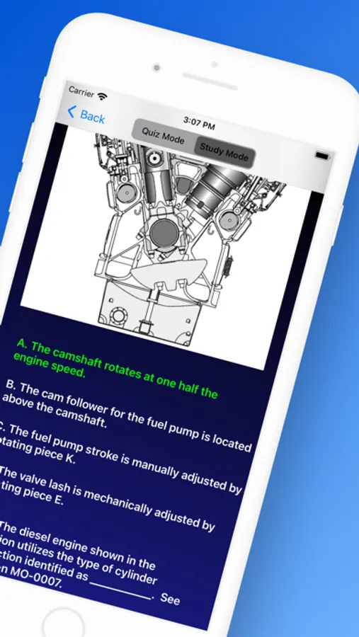 Once a section is selected, the app allows users to select from subsections within a given section. Once selected, questions from that subsection will appear in a scroll content view with two main modes: