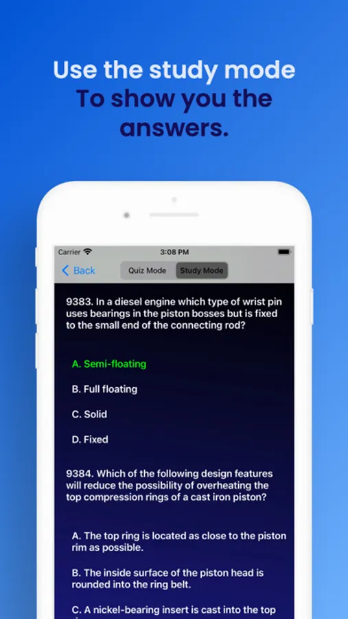 Study Mode - for those looking to just let telepathic osmosis take over 5 mins before the exam, answers are revealed to questions.