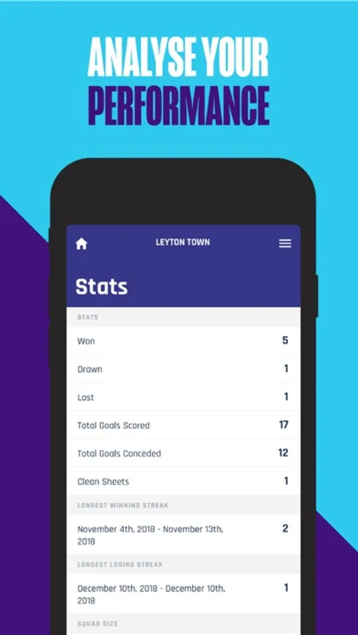 Track team and player stats, including goals, assists, clean sheets, man of the match awards.