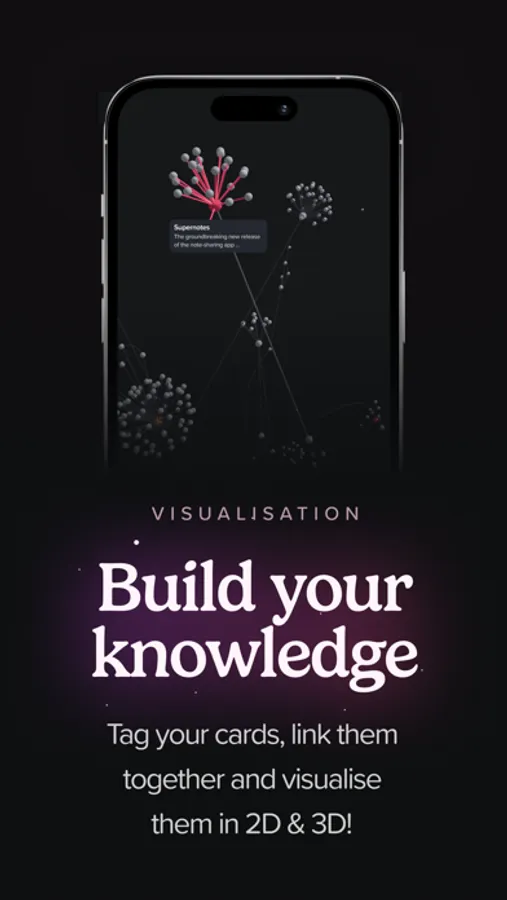 Organize your notecards using tags, creating logical associations across topics and concepts. Seamlessly link related cards together to form a web of interconnected knowledge. Group related notecards together within other notecards and build a hierarchy. With our unique visualization features, you can explore your notes in both 2D and 3D, gaining new insights and uncovering hidden connections.