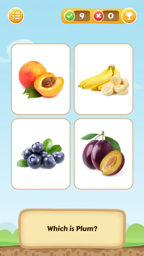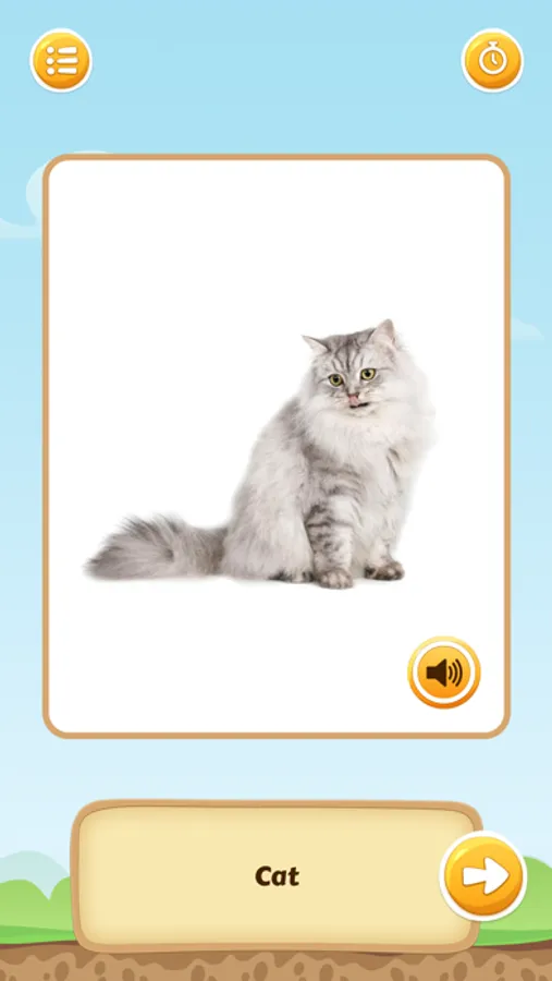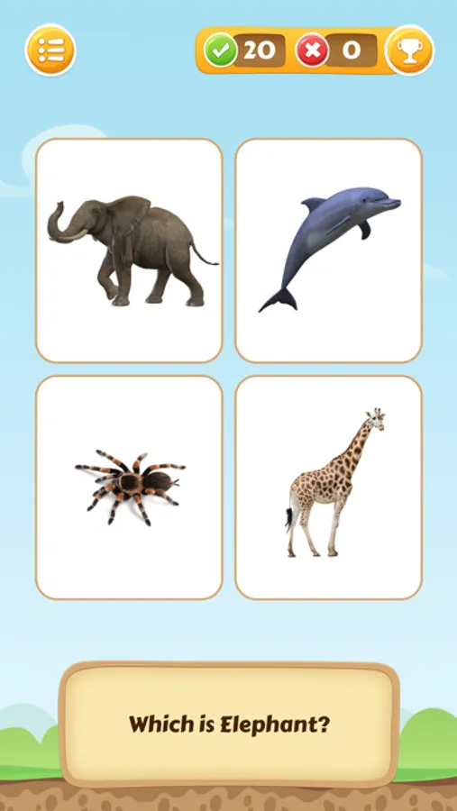 You can reinforce the words you learned from the slides by playing games that are in the format of Know-Win in the GAME Section. The questions on the game section are chosen randomly, so each time you play, you will get a different set of questions. With these questions accompanied by various visuals, you can play games as many times as you want without getting bored.