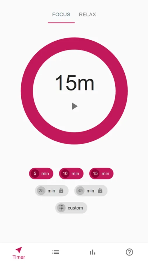 Decide for how long you want to focus and start the timer. Focus on your task until the time runs out. You need to reset the timer if you allow yourself to get distracted.