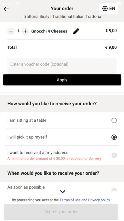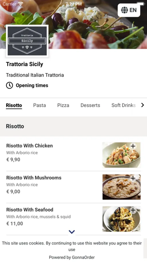 Customer ordering app for Trattoria Sicily.
