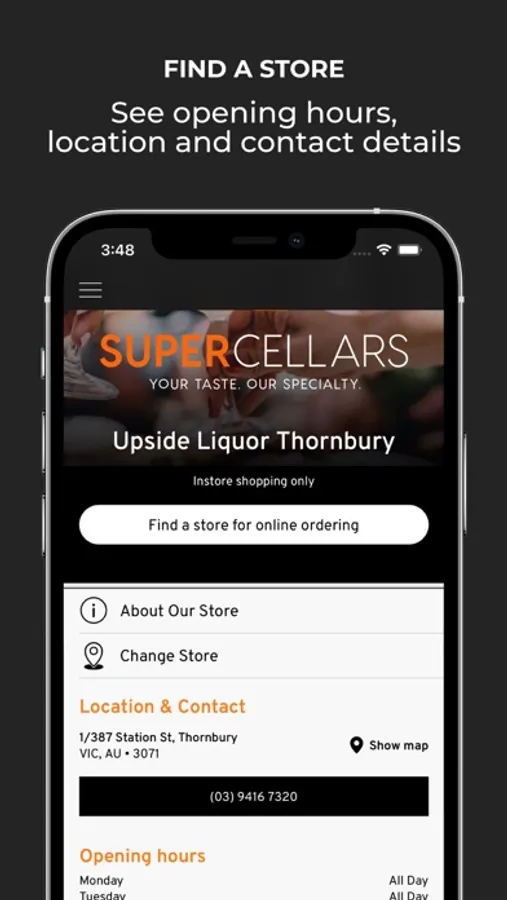 Find your nearest SuperCellars store, view location, contact details, and opening hours, in this easy to use app.