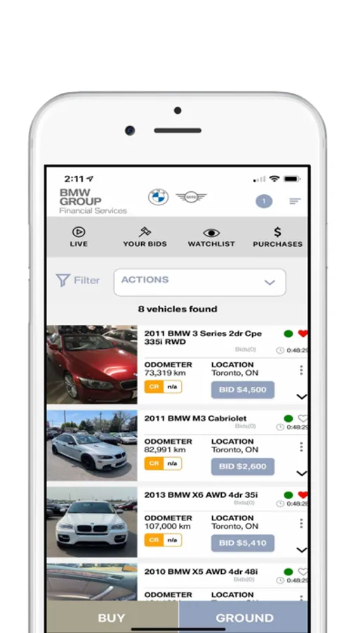 A powerful remarketing experience that simplifies the grounding and purchasing of vehicles. BMW Auction Direct allows you to easily ground/manage your lease maturities, as well as bid and buy used off-lease and corporate BMW Group Canada vehicles.