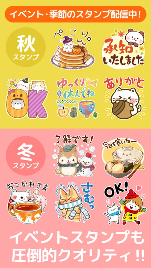 かわいいイラストと日常で使いやすい文言で毎日使いたくなっちゃうスタンプがいっぱい!