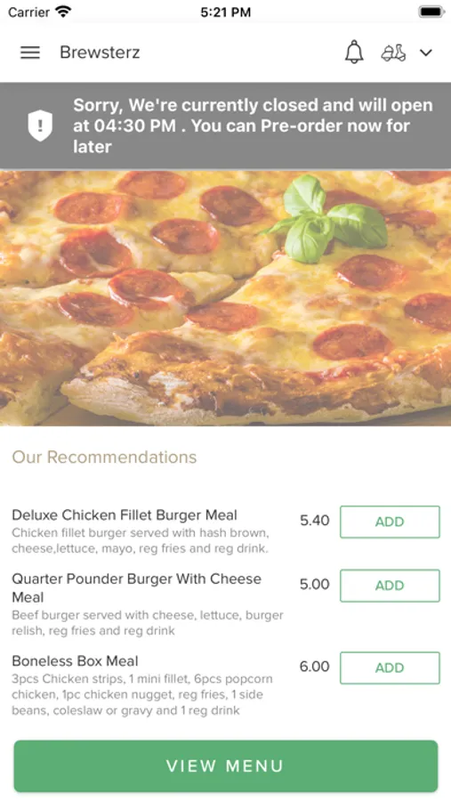 Thank you for visiting Brewsterz in road north. We hope you enjoy our online ordering app and your food.