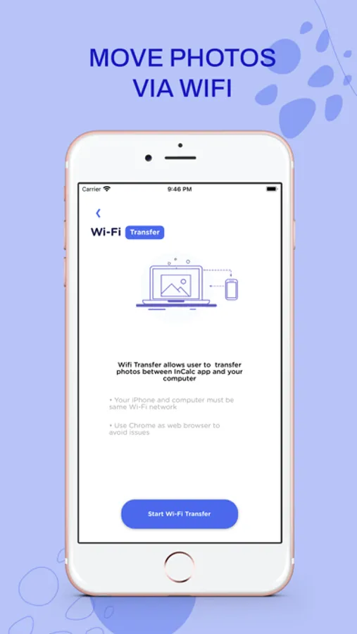- Wifi transfer: Convert photos from your computer to the app and vice versa.