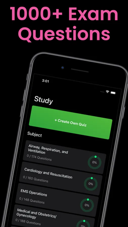 Practice emt study and emt review questions for emt b prep, AEMT and Paramedic practice test. Customize how many emt trainer practice questions you want to study regards to your study schedule. Sections of the exam include: Airway, Respiration and Ventilation, Cardiology and Resuscitation, Medical and Obstetrics/Gynecology, Trauma, and EMS Operations. There are also questions specific to geriatric and pediatric patient care.
