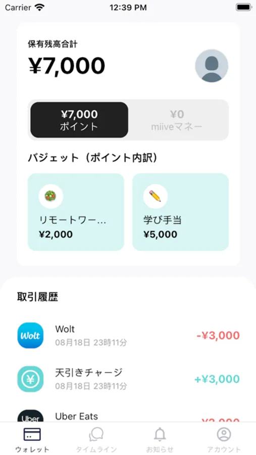 また、毎月会社から決まったポイント※1がmiiveカードに福利厚生として入金されます。