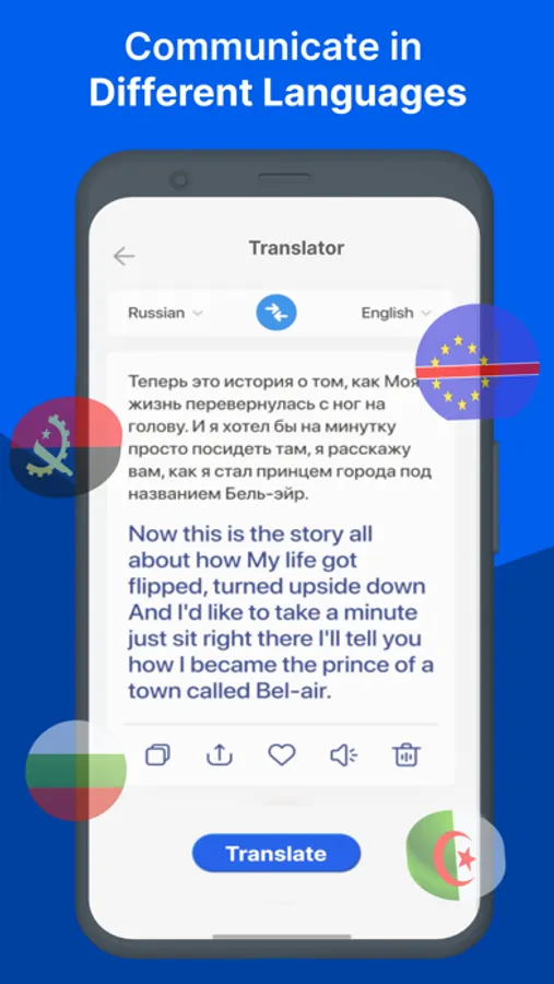 * On-device mode - Enable a fully offline experience for Translate. Use all the Speak & Translate app features for downloaded languages and keep your translations private without needing to turn off your phone’s internet connection. Language translator app with voice, photo & text: multiple languages translator.