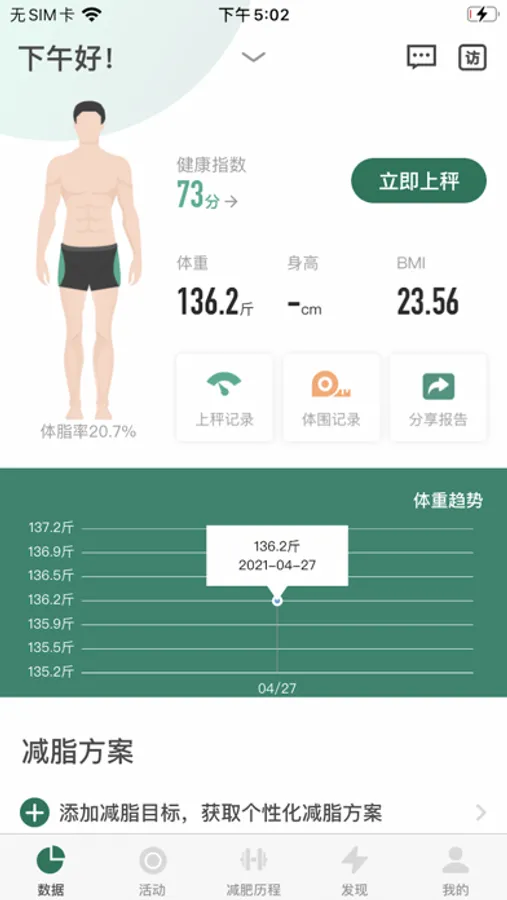 《脂然好》是一款非常科学减肥的软件,在这里大家可以遵循科学的减肥效果,让大家了解营养平衡的摄取和运动的的情况,让用户了解自己每次称重的健康情况,用户根据自己的健康情况进行制定减肥计划!
