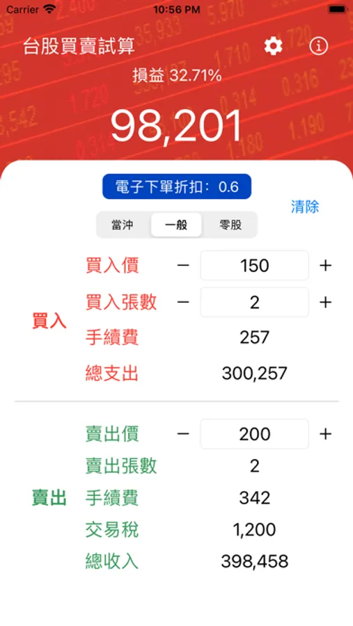 ◆ 輸入買入、賣出價格及張數即可快速算出買賣損益