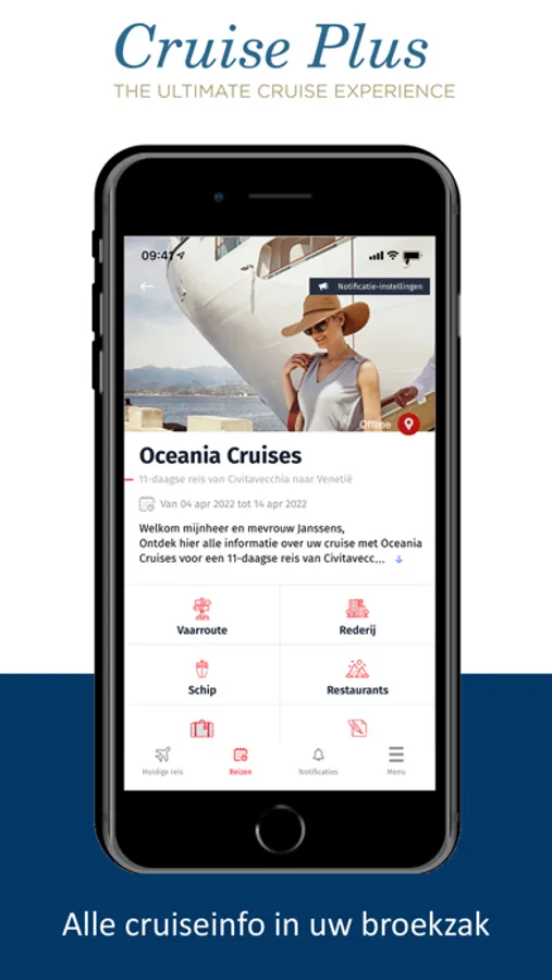 Als gewaardeerde klant van Cruise Plus in Sint-Niklaas kan u hier na het opgeven van uw persoonlijke reiscode alle informatie over uw volgende cruisevakantie terugvinden. Met deze app heeft u alle belangrijke info voor uw reis zoals uw reisdocumenten, uw vaarroute met de havens, de restaurants aan boord, contactinfo, … steeds in uw broekzak. Deze info kan u ook offline beschikbaar maken.