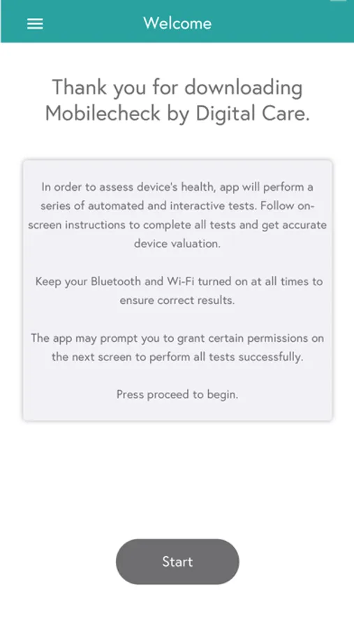 A diagnostic app by Digital Care Group for use in their/partner retail stores. A simple and easy to use tool to receive a real time estimate on the value of your device. The app automatically recognizes make and model of the device, provides a guided process to test all of the main features (Bluetooth, Wi-Fi, LCD, Touchscreen, Speakers, etc.) and offers you the best value for your phone which you can choose to accept or reject. A quick reverification by the retail stores to complete the trade-in before issuing a voucher that can be redeemed at stores.